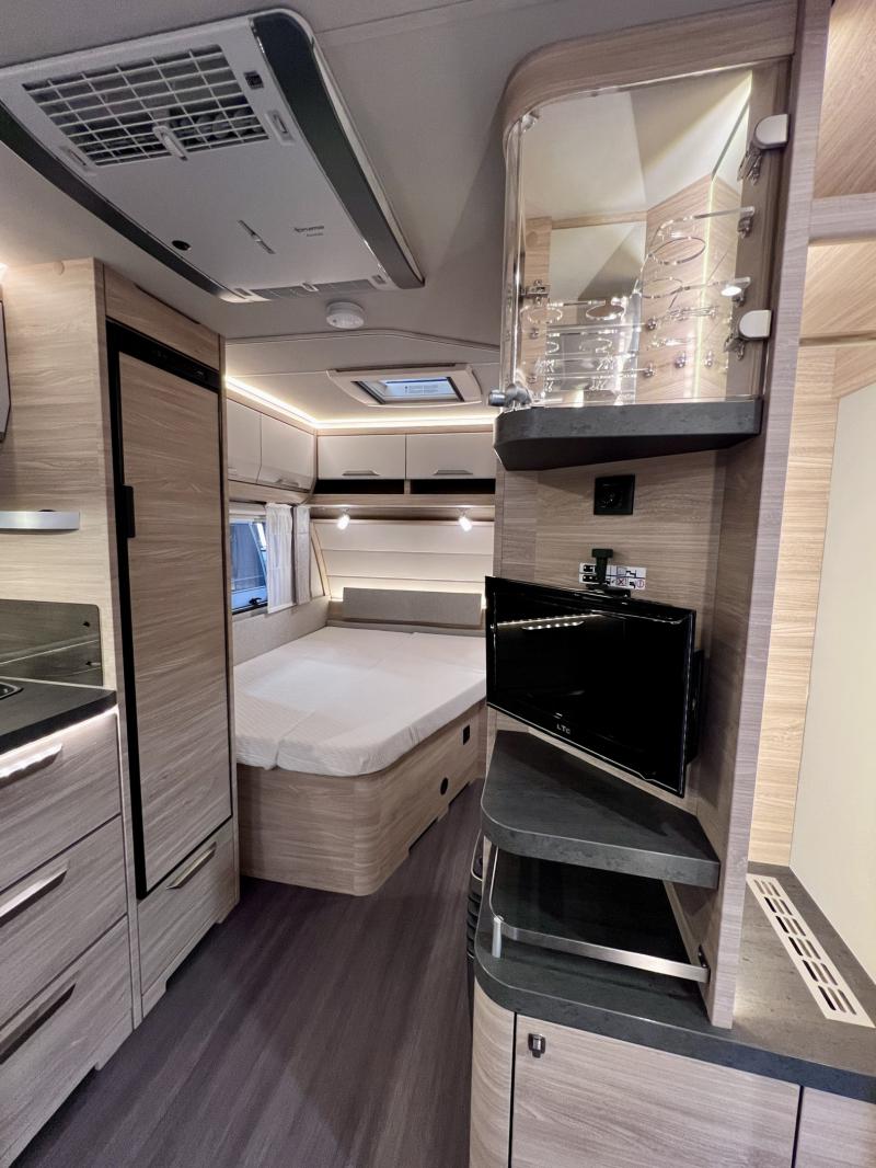 Påsmarkis, Lufttält Kampa Air Pro, AC Truma Aventa Comfort, Cykelställ fram, Köksfläkt, Extra USB-uttag ovanför sittgrupp, TV