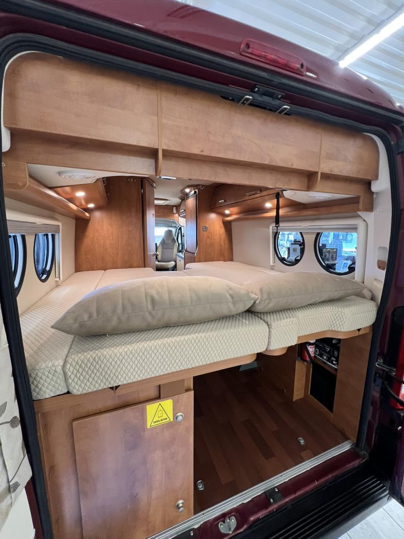 Van Plåtis. Färg: Röd metallic Solcell Cykelställ bak Truma panna El230v + Diesel Långbäddar Automatisk växellåda Totalvikt 3500kg Kamrem bytt 2024 4155 mil